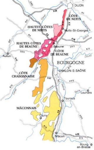 Tem como suas principais regiões : Chablis, Côte de Nuits, Cotê de Beaue, Chalonnaise e Macônnais.