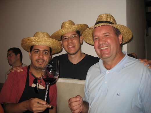Os panas Evandro, Francisco e Juarez Valduga, degustando o Storia