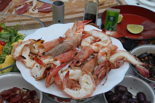 No último dia 30/05 no que poderia ser mais um almoço de domingo, ou um churrasco entre amigos, os panas se encontraram na Casa do pana Emilio e resolveram fazer algo diferente. O cardápio à cargo do Chef pana Francisco Stredel que elaborou para este encontro um menu a base de frutos do mar, regado à um azeite que dispensa comentários, o Biondi Santi. Tivemos lagostins, camarões pistola e peixes assados na brasa alguns com adereços típicos de limão ciciliano, sal e pimenta ate outros adereços bem diferentes com Garam Masala, galheias de grappa com gengibre e pimenta dedo de moça. Claro como alguns não são de ferro, iniciamos com um belo jamón serrano e parmigiano reggiano para acompanhar os espumantes.