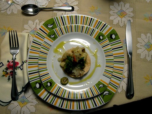 O primeiro prato foi feito com lombos de bacalhau no jeito bem tradicional com batatas, cebolas e azeitonas pretas tudo banhado no melhor aceite de oliva e preparado na panela de barro!