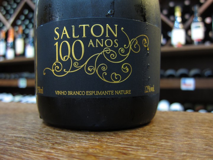 Com apresentação do Daniel Perches, começamos provando o espumante Salton 100 anos Nature. Espumante criado para comemorar os 100 anos da vinícola. Apresentando cor amarelo ouro e boa perlage. No nariz notas de fermento bem presente. Já na boca tem boa acidez e notas de levedura e avelã. Não espere dele um espumante leve e frutado, mas um vinho intenso e que preenche a boca. Acredito que é um produto que deve melhorar ainda mais com o tempo em garrafa. É produzido com 70% Pinot noir e 30% Chardonnay.