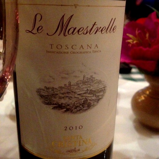 Por fim optamos por um IGT da Toscana, o Le Maestrelle 2010, importado pela WineBrands e vendido por R$69,00 no site. No restaurante pagamos R$119,00. Elaborado com as castas Sangiovese, Merlot e Syrah. O vinho é novo, bem frutado, exala com muita intensidade notas de frutas vermelhas. Na boca é igual, com uma vantagem é leve e bem fácil de beber.