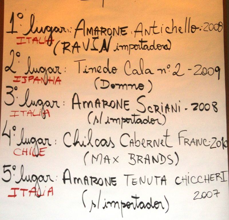 Nesta edição ocorreu algo curioso no TOP 5, um domínio dos vinhos italianos, especialmente os Amarones.
