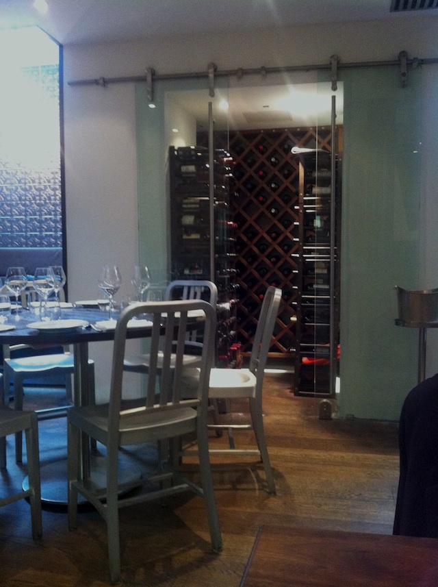 Chegando no restaurante você tem a opção de ir na cantina ou descer até a parte do restaurante. O lugar é pequeno, mas bem bonito. Não há luxo, mas o lugar é bem agradável apesar de estarmos abaixo do nível da rua. Possuí um balcão que mais parece aqueles de lanchonete americana. Uma adega pequena, mas bem bonita.