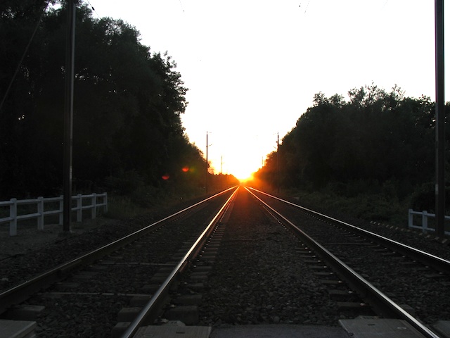 É hora do sol se por, os dois vão perto de uma linha do trem e ficam namorando aquela paisagem.