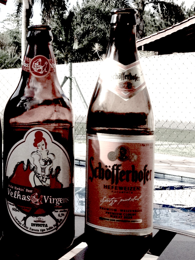 Desta vez, provamos duas cervejas, a Velhas Virgens (brasileira, feita para comemorar os 25 anos da banda de mesmo nome) e a alemã Schofferhofer Hefeweizen.