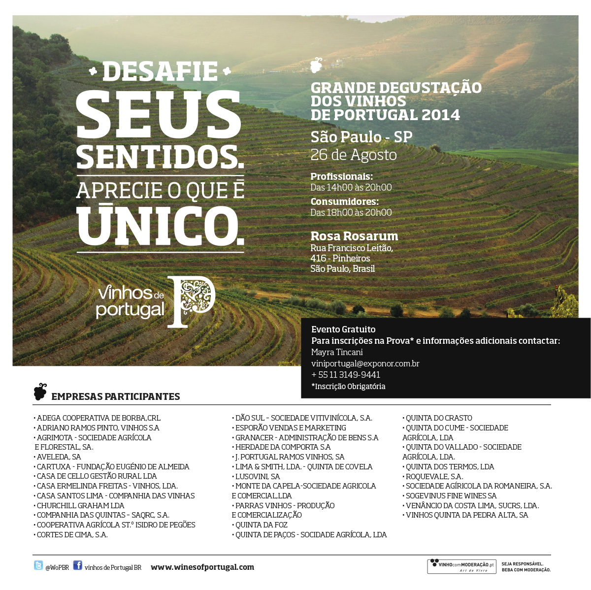 Eventos Grande Degustação dos Vinhos de Portugal – São Paulo/SP Amanhã, terça-feira 26 de agosto, acontecerá em São Paulo a Grande Degustação de Vinhos de Portugal. Mais informações: Descubra mais sobre Confraria dos Panas Assine para receber nossas notícias mais recentes por e-mail. Digite seu e-mail… Assinar Compartilhe isso: Clique para compartilhar no WhatsApp(abre em nova janela) WhatsApp Tweet Clique para enviar um link por e-mail para um amigo(abre em nova janela) E-mail MaisCompartilhar no TumblrCurtir Carregando... Relacionado