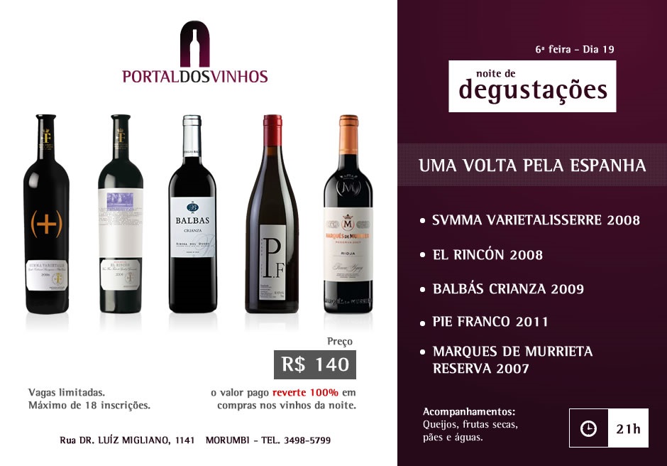 Degustações Degustação UMA VOLTA PELA ESPANHA Na próxima sexta-feira dia 19/09, na Portal dos Vinhos no Morumbi haverá uma degustação de vinhos espanhóis. Mais informações: Descubra mais sobre Confraria dos Panas Assine para receber nossas notícias mais recentes por e-mail. Digite seu e-mail… Assinar Compartilhe isso: Clique para compartilhar no WhatsApp(abre em nova janela) WhatsApp Tweet Clique para enviar um link por e-mail para um amigo(abre em nova janela) E-mail MaisCompartilhar no TumblrCurtir Carregando... Relacionado