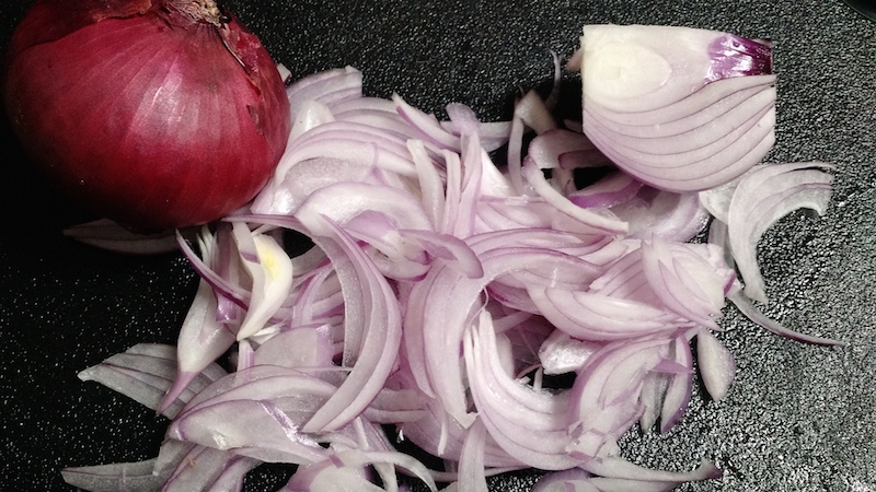 100 g de cebola roxa, cortada em julienne (fica como pequenos arcos)