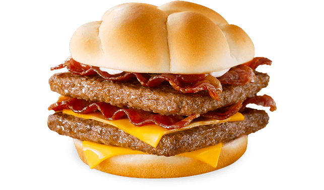 O Baconator, é composto por dois hambúrgueres, maionese, ketchup, queijo, pão torrado e incríveis 6 fatias de bacon defumadas.