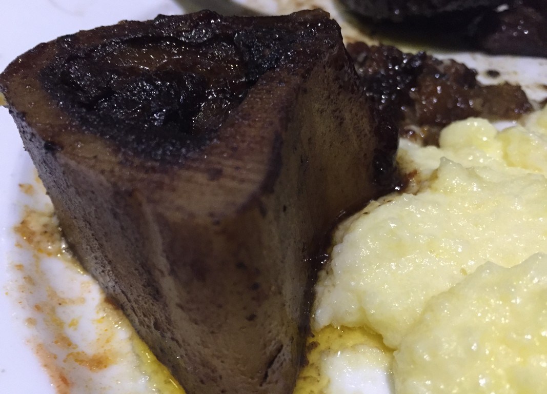 Já o ossobuco era dos deuses, seguramente o melhor que já comi. A carne desmanchava no garfo e estava muito saborosa. Para completar, podíamos remover o tutano e comer esta iguaria. Era possível sentir aquela gordura que chega a grudar na boca. Esse ossobuco me fez lembrar os caldos de mocotó que eu tomava quando era jovem, sempre vinha aquela gordura boiando e alguns pedaços de tutano.