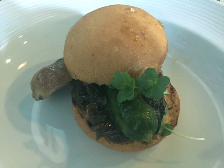 Linguiça do Imigrante: Sanduíche com linguiça feito na casa, espetacular! Vai geleia de cebola, picles de pepino, mostarda da casa e pão de milho. Passaria o dia comendo este sanduíche.