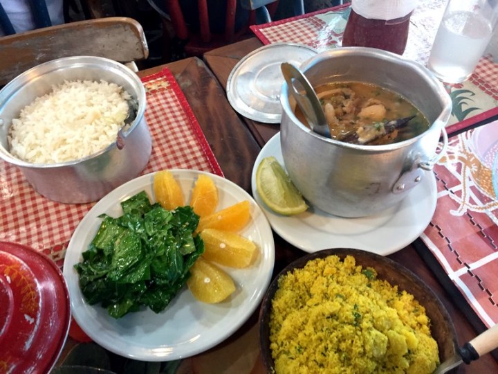 “Feijoada” de frutos do mar, nada mais é que uma bela caldeirada. É boa, porém pesada.