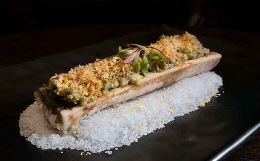 Entrada – Tutano assado com cogumelos ao pesto e crosta de panko