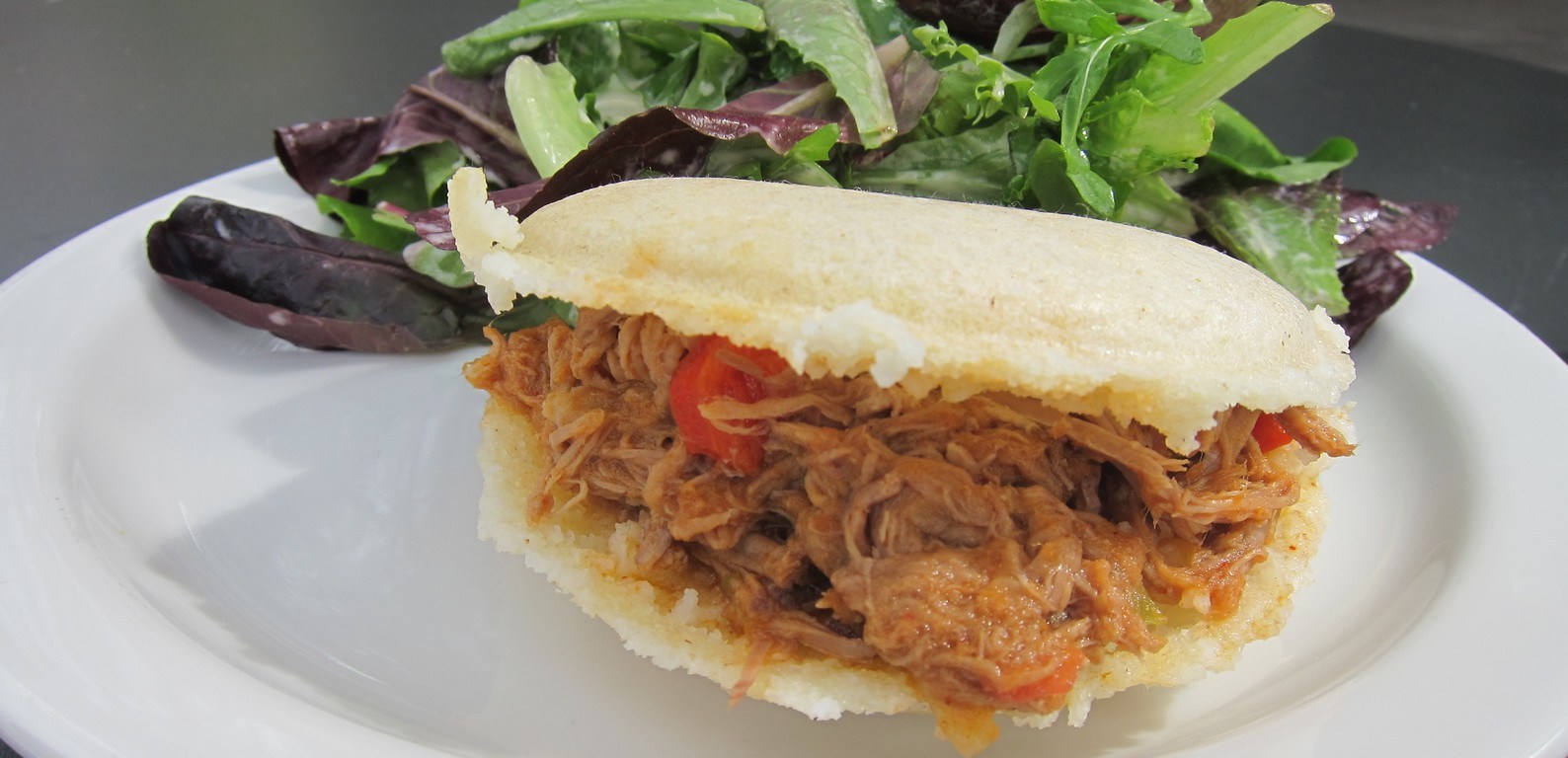 Só que neste café há opções de comida venezuelana, como a famosa e tão deliciosa arepa.