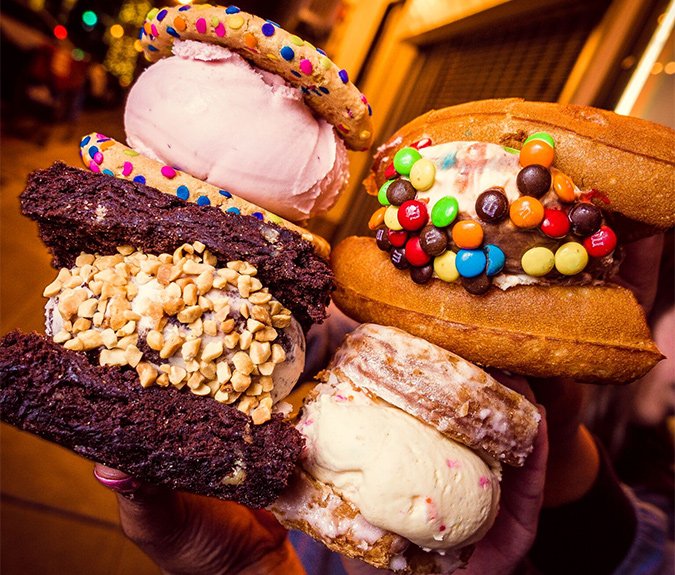 Há outras opções, com brownie ou cookies, ambos com recheio de sorvete.