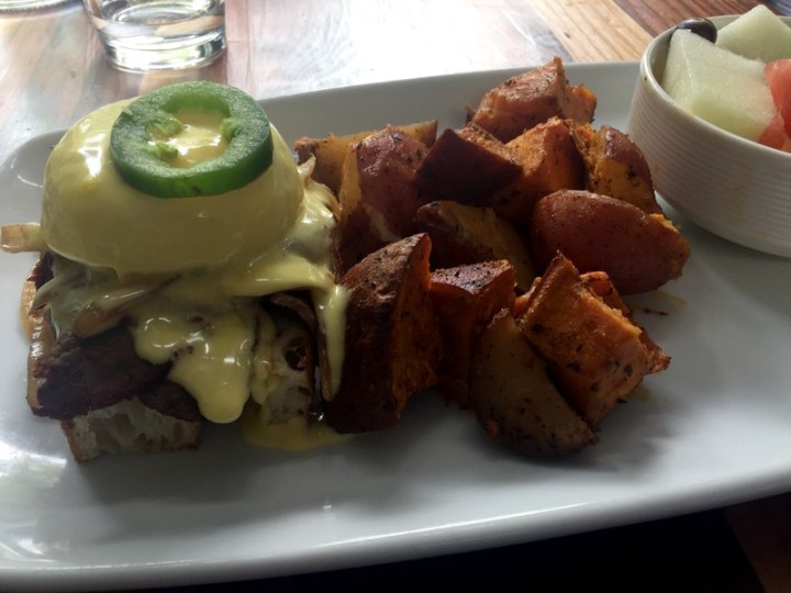 Você pode por exemplo, provar o Egg Benedicts, com ovos poached, salmão defumado da casa e batatas. Uma delícia! A porção menor serve uma pessoa.