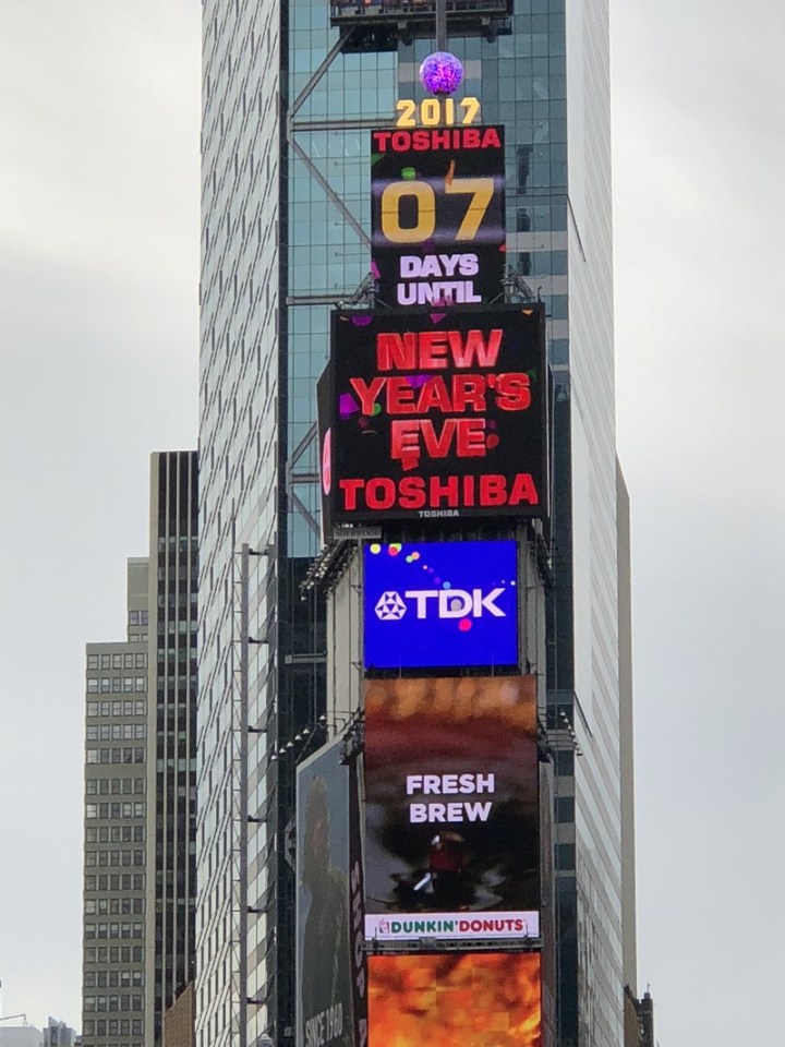 A Times Square nos dias que antecedem ao ano novo, parece uma 25 de Março dentro de um freezer. As lojas são cheias, amarrotadas de gente, isso vai ficando mais intenso depois do natal, até para ir à farmácia é uma tarefa que exige paciência. O frio nas ruas também incomoda e muito.