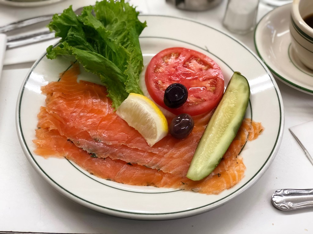 O lugar é bem pitoresco, uma venda com uma ótima variedade de salmão defumado, incluido o gravlox, feita de salmão cru marinado durante alguns dias em uma mistura de sal grosso, açúcar e endro. Uma delícia, algo inacreditável.