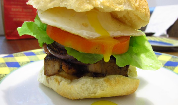 Agora acredito que estou mais próximo do topo do Olimpo. Sou uma pessoa que ama bacon, e qualquer coisa feita com ele. Em uma visita a Casa Santa Luzia, resolvi comprar uma bandeja de pancetta, calabresa (em fatia) e um … Continuar lendo Hambúrguer #6 – Pancetta